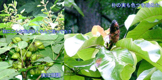 梅雨頃にはあんなになっていた朴の実、あんまり見つかりません。これも秋に向けて、色づ