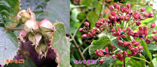 自然学校敷地からちょっと出たところのコンクリート擁壁につるを伸ばすいちごです。11月く