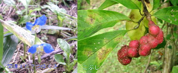 カレンダーを間違えたつゆくさ、こぶしの実も色づいて