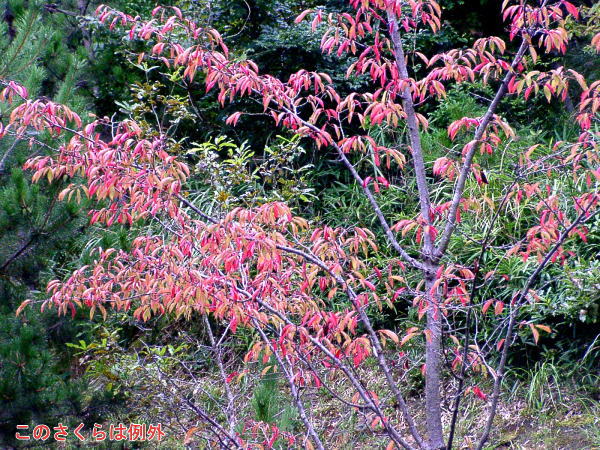 した。こっちも秋になると紅(というより少しだいだいが勝った赤)くなります。そして、ひどくか