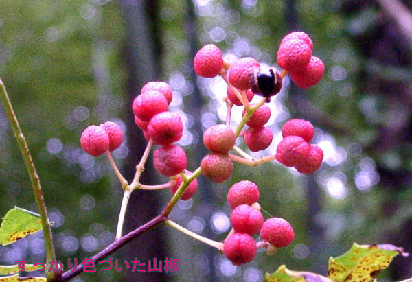 分くらい紅に染まっているんです。満開の紅山椒の写真、ピンボケになっちゃってお見せで