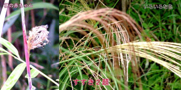 すすきの穂、どんな成長過程を通るか、例えば右の写真の小さな実がいくつも垂れ下がっ