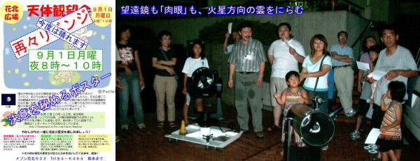 で観望会をしよう、それなら火星大接近がチャンス、と盛り上がりました。期日選びは2転