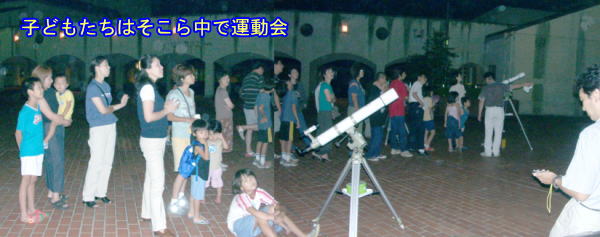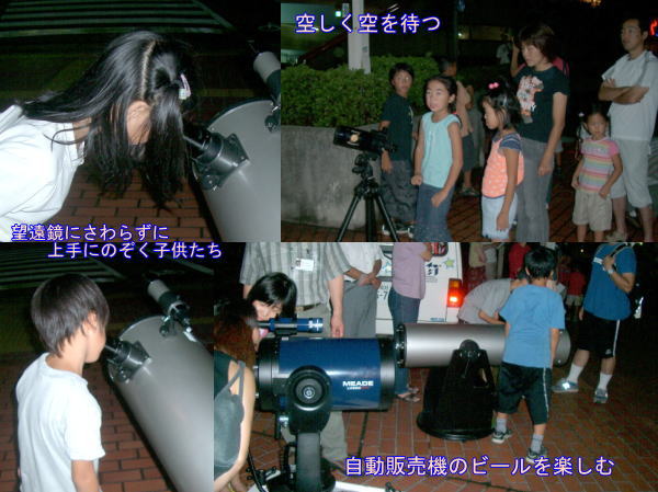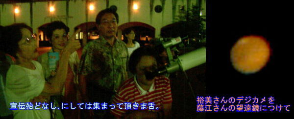 す、人気も上々)、月に向けてある小さな望遠鏡を代わる代わる何回ものぞいては楽し