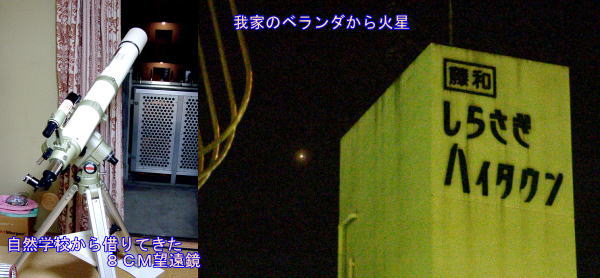たり、ベランダから見える火星に「今日は見える!」と駆けつけてくださる、階下の小ホ