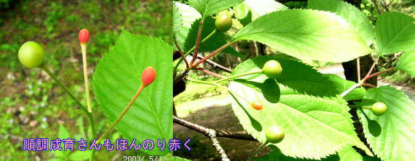 さくらんぼが仲間入り 南但馬の早咲きはさくらんぼです。これ、違反かな?
