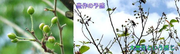 かに色さえつき始めています。右のはまだ数ミリ、でも、枝一杯になって