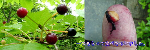 りをつかまえることができました。これは真っ赤なさくらんぼがたくさんなる桜の樹です。