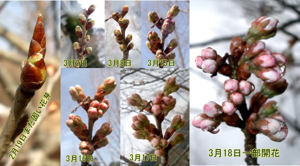 去年(2003)は桜が咲き始めてからとりました。今年は花芽がふくらみ始めるあた