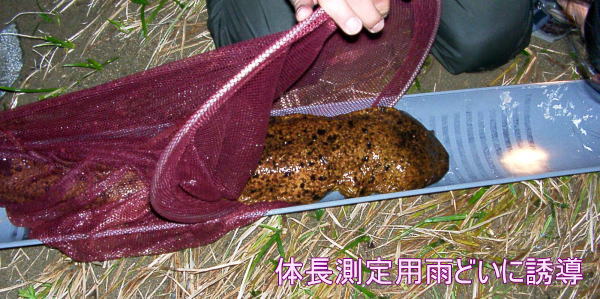そんな「調査」が済むと、網に戻し、つかまえた場所に戻して水の中に放
