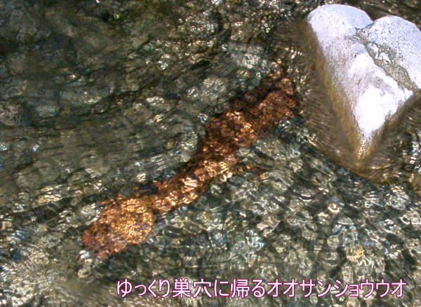 します。オオサンショウウオちゃんは慌てず騒がず、ゆっくりと巣穴の方