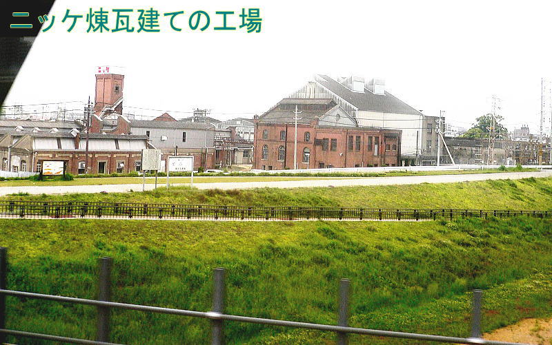 朝9時過ぎ、野里からJRで姫路乗り換え、加古川に向かいます。加古川駅は今回のツァーの目的である加古川の東岸にあるので、駅が近づくときに鉄橋を渡ります。川を挿んで両側に、煉瓦造りの工場が並んでいます。これは東岸、西岸のものの方がきれいで立派、多分こちらが現役ではないかと思うのですが、おじさんいつものドジで、これは西側の分です。 |