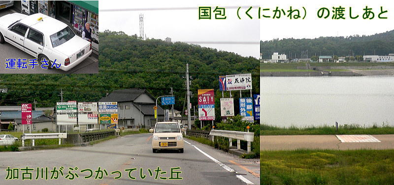 その間にもいろいろ解説があります。一番印象的だったのは土手の上の道を走りながら後席の後ろ窓から見える小高い丘に、加古川がぶつかり、そこで進路を西にずらし、そのあたりが洪水でよく溢れたうんぬんのくだりです。ということは大堰の工事で加古川の流路を数百メートルずらせた、ということです。工事中に大雨が合ったらどうなるのでしょうね。まぁ、とにかく忙しく国包の渡しあとまで見てまわって厄神の駅に戻り、次の電車に滑り込みました。 |