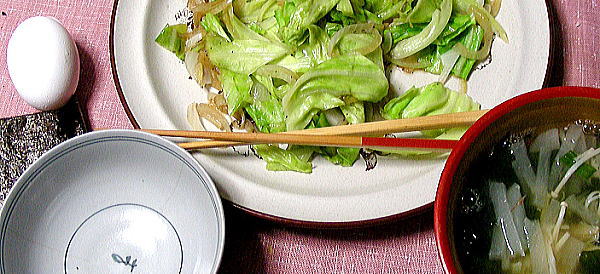 1月9日朝 ご飯と汁と生卵、それに海苔。 |