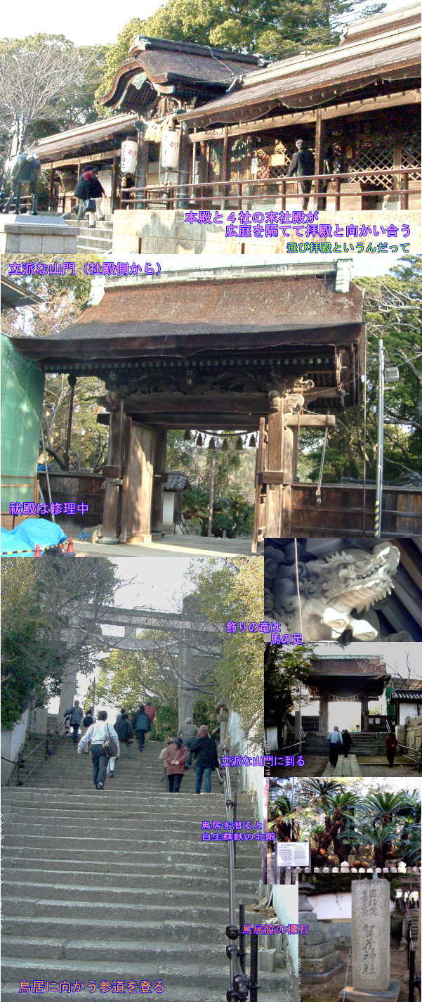 古くからの港室津に「賀茂神社」をたずねました。参道は急な階段になっていて、鳥居脇の