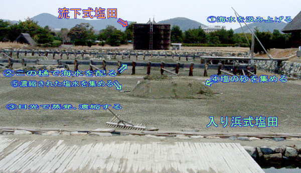 昔ながらの塩田が展示してありました。手前が古い(それでもおじさんの子供の頃より新