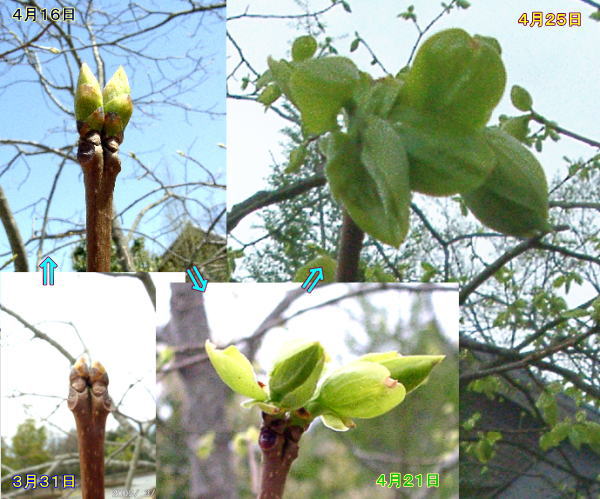 3月下旬、固ぁ〜い固い芽が少しずつふくらみはじめます。4月になるとアッという間、萌黄から