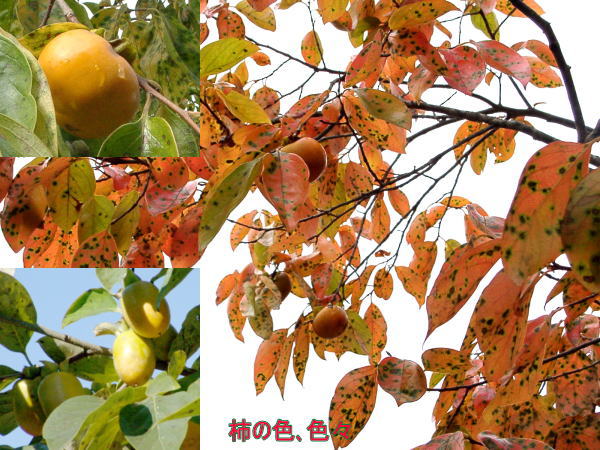 んが早い遅いがあります。柿の紅葉はまだら模様が不思議な美しさ、見飽きません。