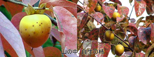 森を歩くとたくさんの木々に埋もれて、しかしがんばって日光を争い、いろんな柿が思い思い