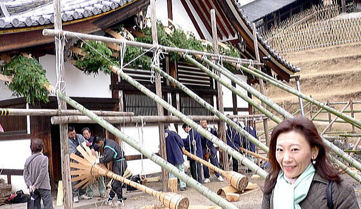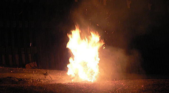太い竹の先に檜の枝先を束ね、灯油が染ませてあります。どんな燃え方をするのでしょう。 | ||||||||||
