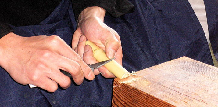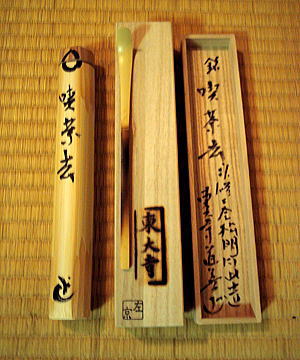 話にだけは聞いていたお水取り、すばらしい一夜が明けて・・・・これだけではすまないのが欲張りyumiさん。奈良・・・と言えばいつも師匠が取り寄せてはここぞというときに「お使いなさい」と下さった茶筅を作っている丹後さんもおわす“茶筅の里”高山地区があるのです。確か事前予約をすれば茶筅製作の実演を見学できるはず・・・・何年か前の雑誌で目にした記事を探し出し丹後さんにお電話快くお約束を受けていただきました。 | ||||||||||
