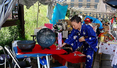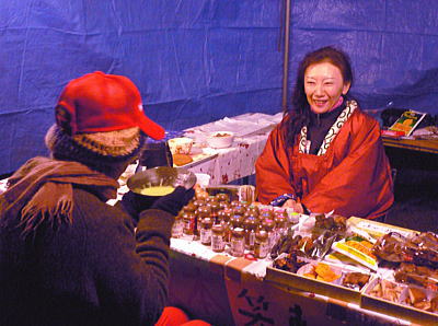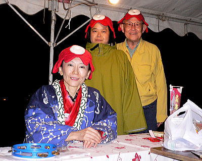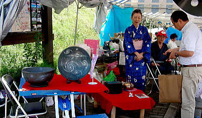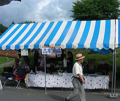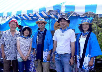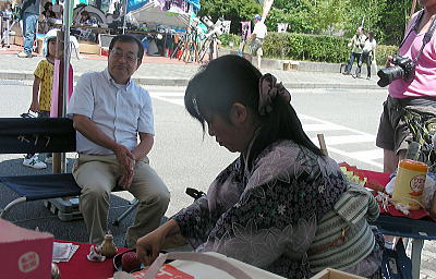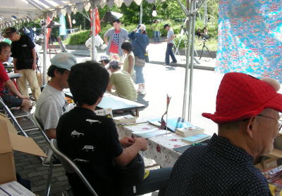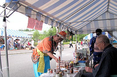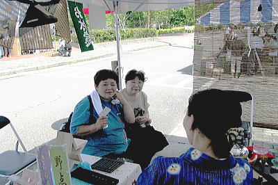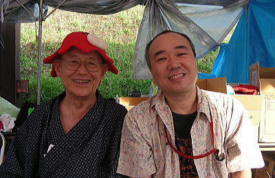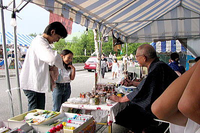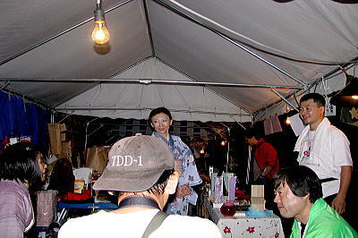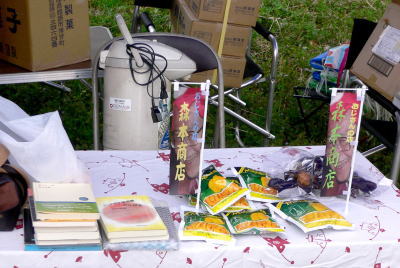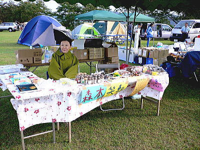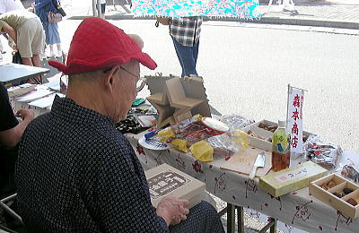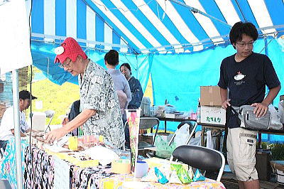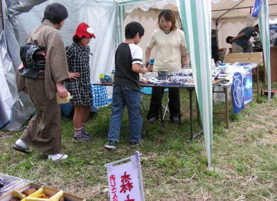 いつもながらの「モリモト商店」。中学2年生になったアキノリ君が、例えるならばカンガルーのごとく、ブース内にとどまらず祭り会場中を飛び回り、コアラ的動きのモリモトおじさんをサポートしてくれました。このコンビネーション、絶妙でしたね! |