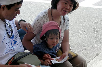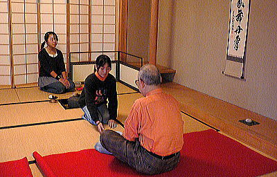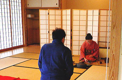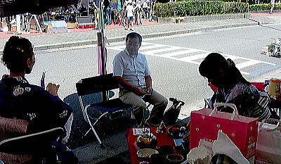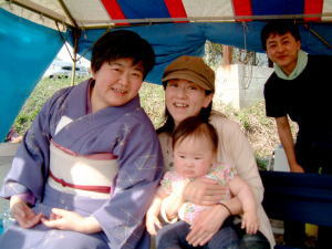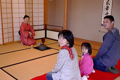 もちろん、初めてのお客様も。ご主人、奥様ご一緒にお茶をやっていたという茶 の湯ご一家。yumiさん、いきなりキンチョー。恐らく茶の味に舌の肥えているお嬢 ちゃんが完食ならぬ完飲してくれて、ほっと一安心。 |