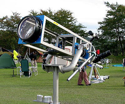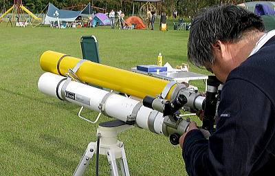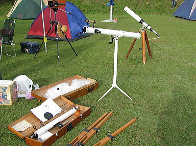 望遠鏡の出し物も盛んです。森久保さんの遺品から見つかった6cmの反射鏡、5cmの屈折鏡は科学画報だか子供の科学だかの教材社から出た第2次大戦中の製品のようです。![]() |