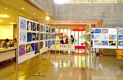 「宇宙」をテーマにした絵の展示、その奥には・・・ |