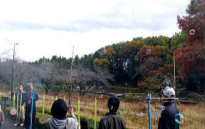 でもシャッターチャンスが悪いと人間とシャボン玉が写る。 |