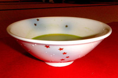 西の空に沈みかけた北斗七星、分かりますか? これ、リッパな京焼の抹茶茶碗なんです。 |
