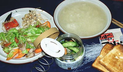 当は例によって浅漬けとスープにトーストサンド。パンの