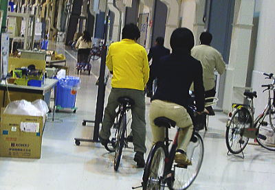 一周1400mの蓄積リング内を行く。先頭は岡田京子さん。