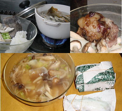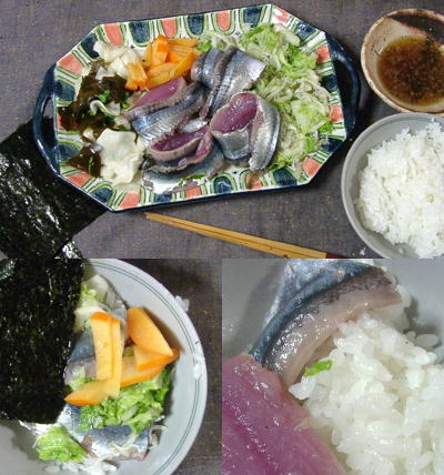 かめを足し、昨夜のお刺身の残りを最後に入れました。