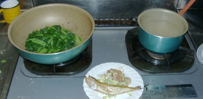 具は蕪の葉っぱを炒めてはたはたの一夜干し、