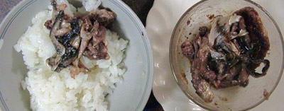 デザート代わりに腸とそのまわりをチンしてご飯にかけ