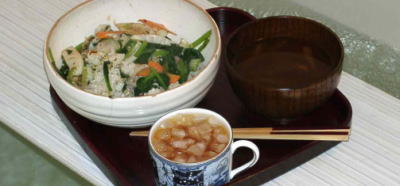 わかめ塩出しした水、塩以外にも味があるみたいで、もったい ないと思っていたのです。今回は「完全利用」できていい気 持ちです。 |