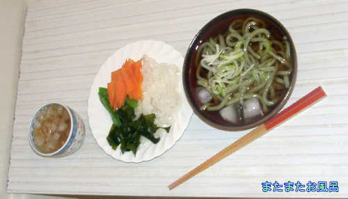 そんなわけで「夜食」を兼ねてお風呂でヨモギうどんを食べました。