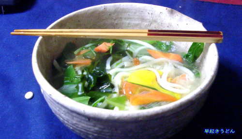 い、なんて思うと早起きが必要。うどんを茹でながら野菜も入れて、もう一