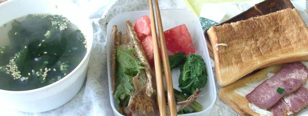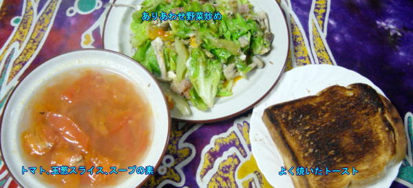 ープの素」に具を入れて、そしてトースト、とにかく遅刻はなしでした。