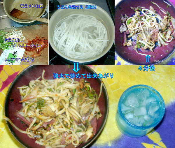 お腹が空いて帰りにラーメンを食べたので、お夜食(チョッと重い目)に焼きヨモギうどんです。