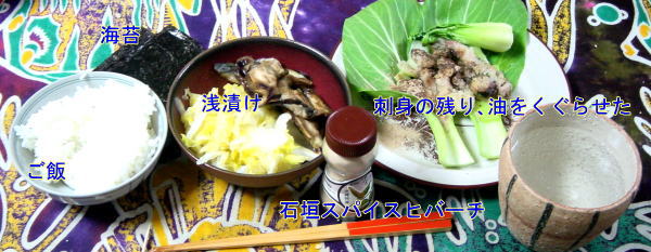 添えました。もう野菜はねぎの切れっパシしかありません。味噌汁の具にしました。