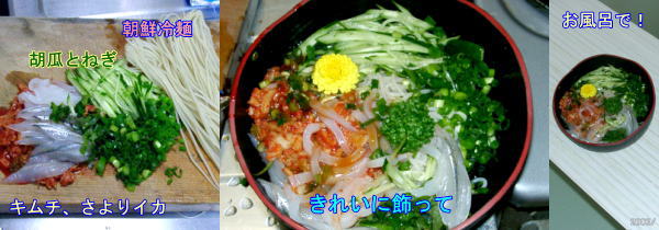 この頃朝鮮冷麺食べないなぁ、ふっと思ったので今日買ってきて、お風呂で食べました。具は