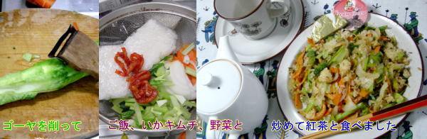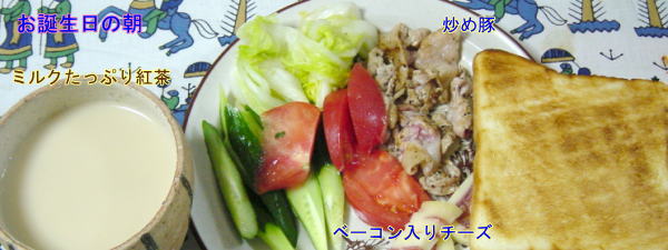 日と関係するかしないか、ミルクたっぷりの紅茶、浅漬けはくさい、胡瓜とトマトに炒め豚とベー