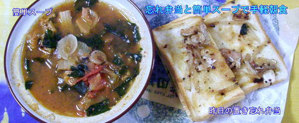 今日はどこにも行かないでいい日です。先ず朝食は昨日置き忘れられたお弁当のサンドイッチ、