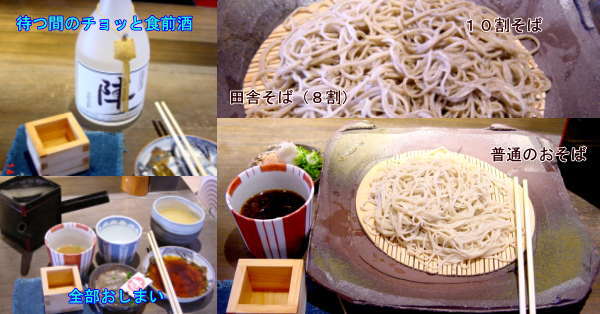 信州10割そば、どこどこ産の特別な粉の8割そばの組み合わせで一つ、写真でも色の違い