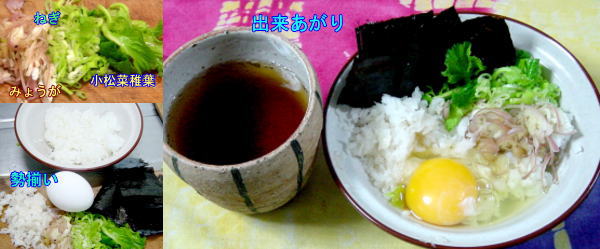 って言うのでしょうか?みょうがねぎ小松菜卵海苔、超旨い、は事実です。
