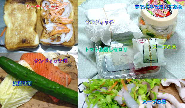 結構楽しめるものもあるのですが。今日は刻み玉葱と鮭(あら、腹身)でサンドィッチ、浅漬