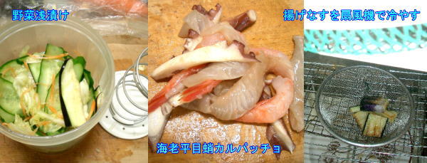 お店の主力商品)あぶらでまぶして、浅漬けで半分使った茄子は油を潜らせて風をあてて