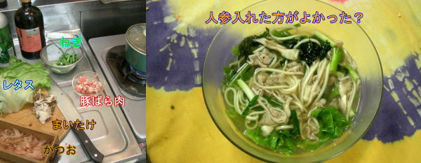 刻んだ青いレタスの葉に熱々のうどんと流し込みます。野辺山にいた頃は地元で元気のいい